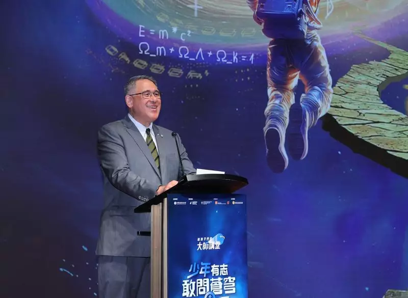 Lester Huang, Deputy Chairman of The Hong Kong Jockey Club and IoP Chairman delivers a speech at the Hong Kong launch ceremony of the Nurturing Future InnoTech Talent Project.