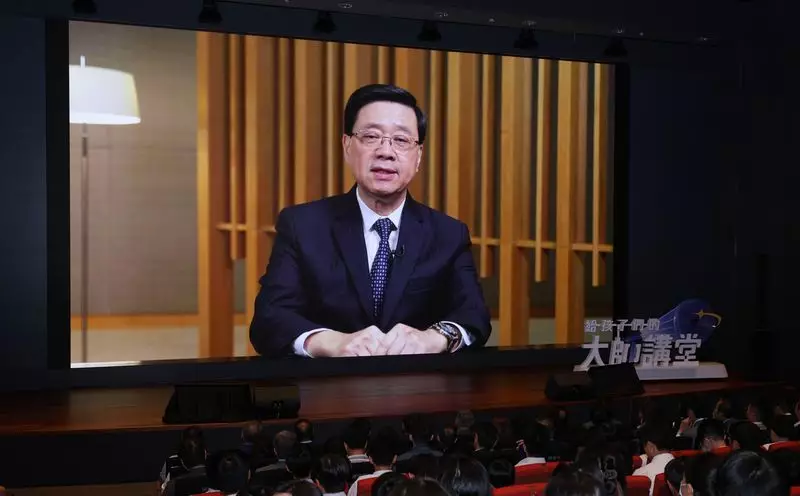 John Lee, Chief Executive of the HKSAR, delivers a video address at the Hong Kong launch ceremony of the Nurturing Future InnoTech Talent Project.