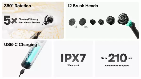 - 12 Magnetic Brush Heads – Interchangeable system for versatile cleaning applications