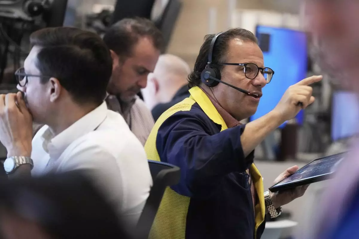 Trader Michael Capolino, right, works on the floor of the New York Stock Exchange, Wednesday, Sept. 17, 2025. (AP Photo/Richard Drew)