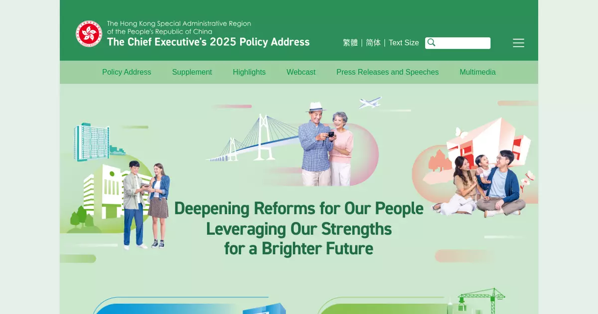 The Chief Executive, Mr John Lee, today (September 17) announced his fourth Policy Address entitled "Deepening Reforms for Our People and Leveraging Our Strengths for a Brighter Future", setting out a range of initiatives anchored in two pillars - the economy and people's livelihood, enabling citizens to enjoy better quality of life.