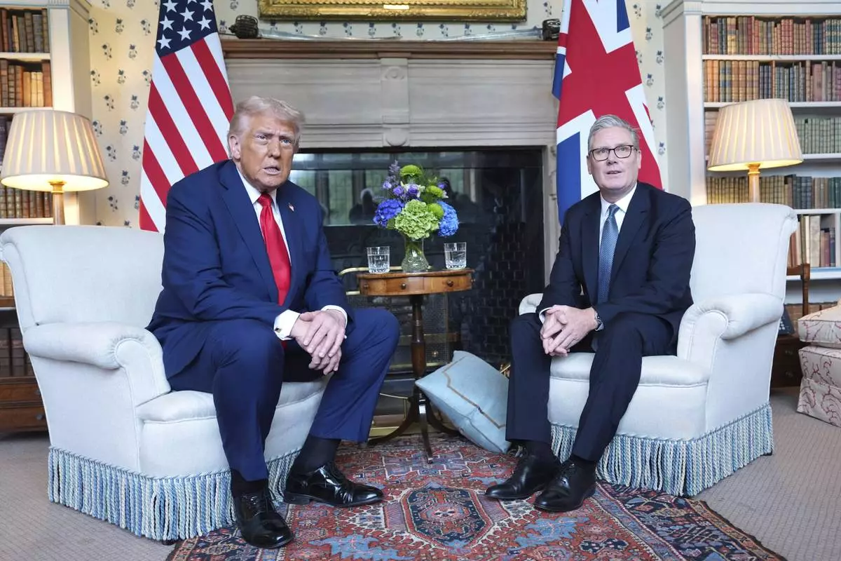 President Donald Trump meets Britain's Prime Minister Keir Starmer at Chequers near Aylesbury, England, Thursday, Sept. 18, 2025. (AP Photo/Evan Vucci)