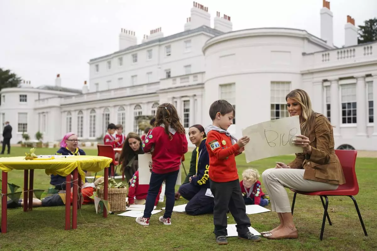 Britain's Kate, Princess of Wales, center left, and First Lady Melania Trump, right, tour Frogmore Cottage in Windsor, England, Thursday Sept. 18, 2025. (Nathan Howard/Pool Photo via AP)
