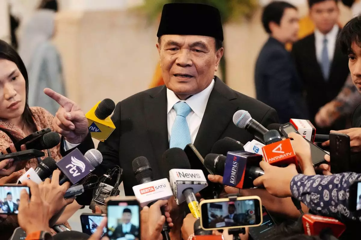 Indonesia's newly-appointed Coordinating Minister for Political and Security Affairs Djamari Chaniago talks to journalists after swearing-in ceremony at the presidential palace in Jakarta, Indonesia , Wednesday, Sept. 17, 2025. (AP Photo/Achmad Ibrahim)