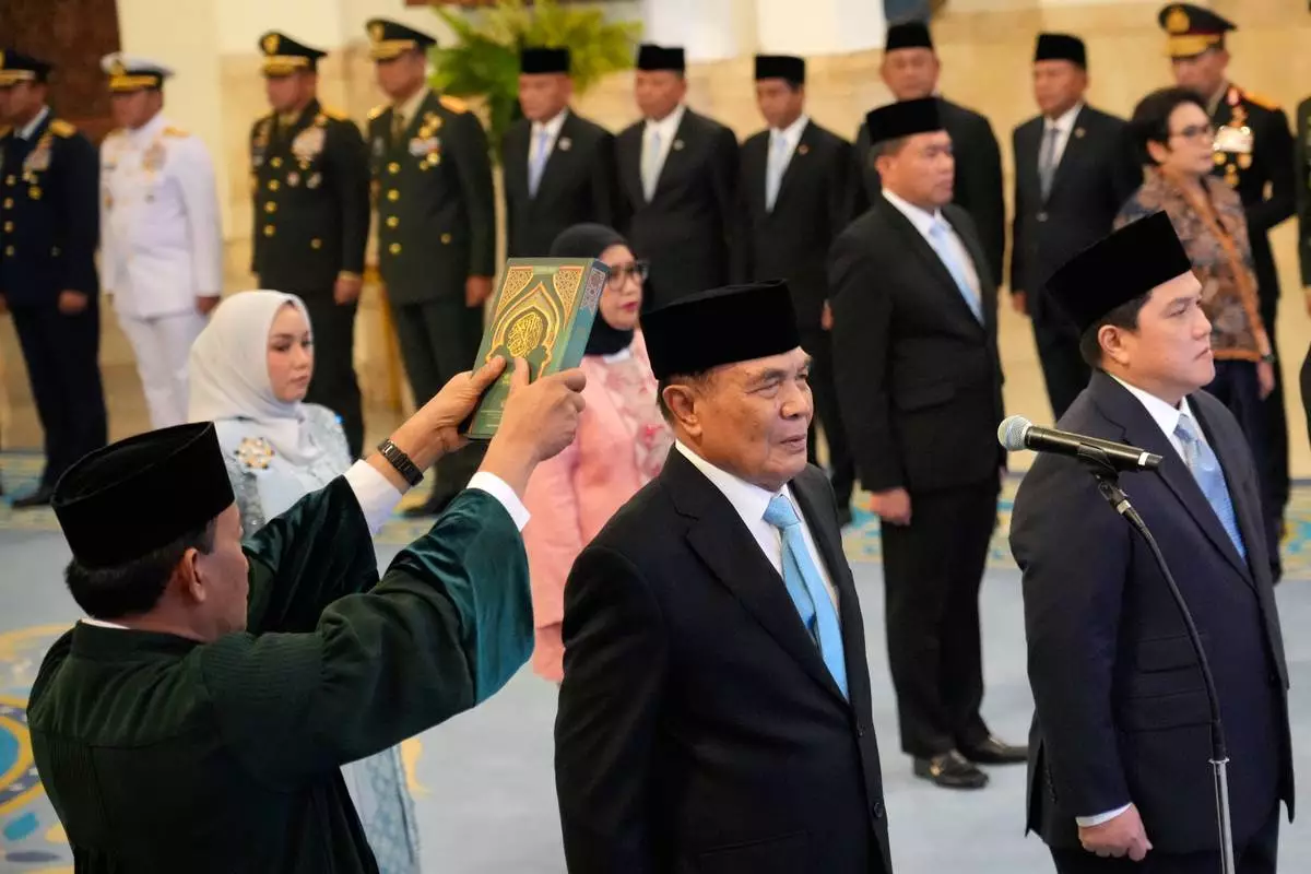At a ceremony at the presidential Merdeka Palace in the capital, Jakarta, Subianto also swore in three other ministers who were removed from the Cabinet without a successor, including Erick Thohir, who moved from his position as minister of state-owned enterprises to minister of youth and sports.