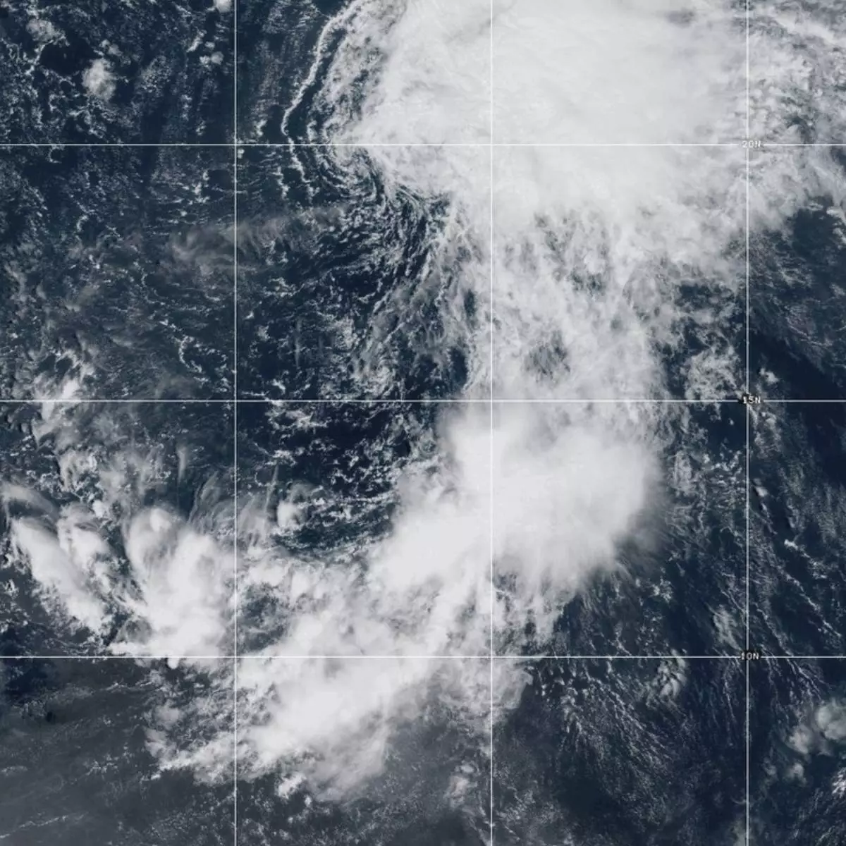 This GOES-19 GeoColor satellite image taken Wednesday, Sept. 17, 2025 at 10:40 a.m. EDT, and provided by NOAA, shows Tropical Storm Gabrielle in the tropical Atlantic Ocean. (NOAA via AP)