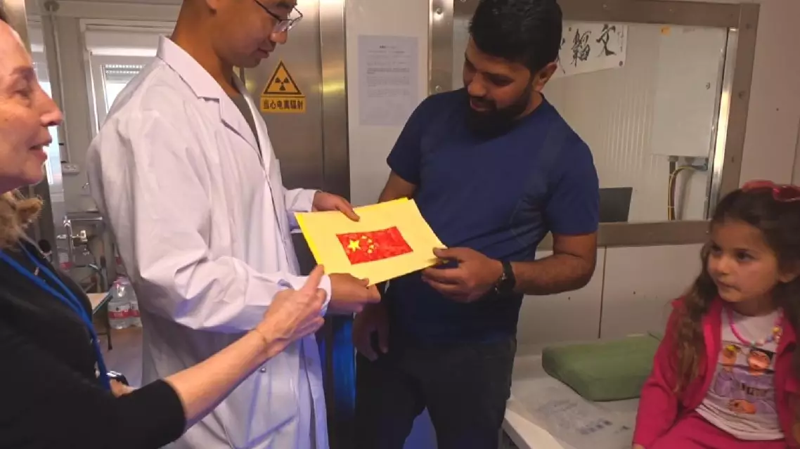 A young Syrian refugee living in Lebanon has drawn the Chinese national flag to show her heartfelt gratitude to the Chinese peacekeeping doctor who healed her broken leg and brought her comfort with exceptional skill and meticulous care.