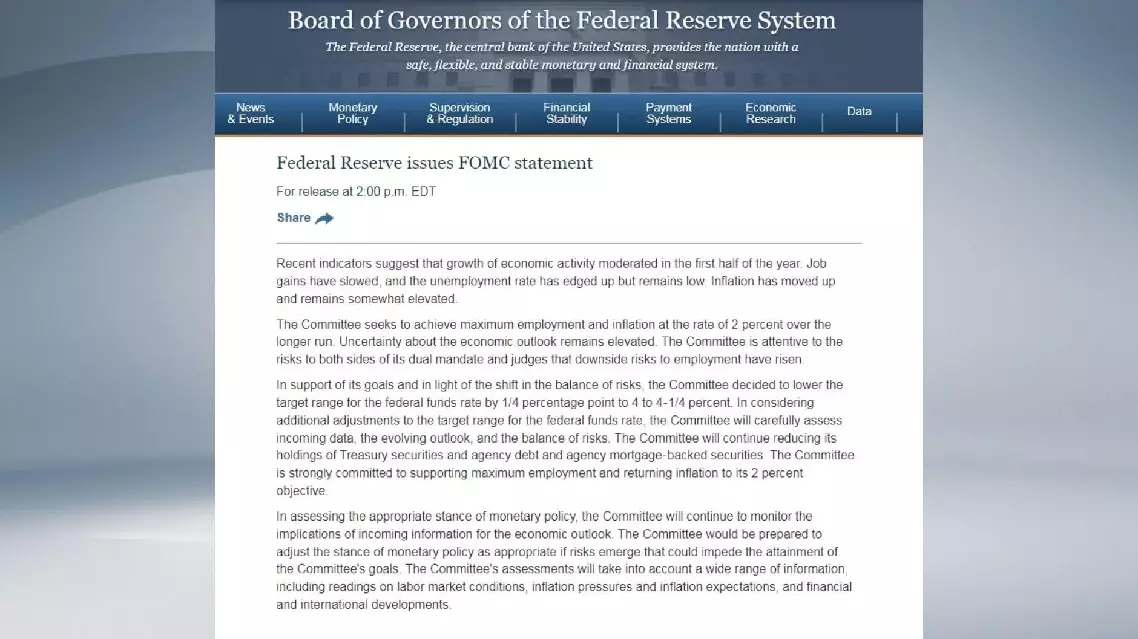All 12 members of the FOMC, including Lisa Cook and Stephen Miran, attended the meeting. While 11 members voted for the 25-basis-point cut, Miran voted against the action, preferring a 50-basis-point cut.