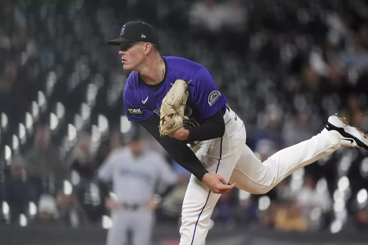 Colorado Rockies starting pitcher McCade Brown works against the Miami Marlins in the first inning of a baseball game Wednesday, Sept. 17, 2025, in Denver. (AP Photo/David Zalubowski)