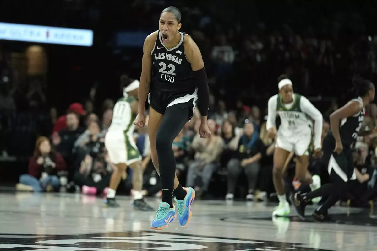 LAS VEGAS (AP) — A’ja Wilson scored 38 points to tie a playoff career high, Jackie Young had a go-ahead follow shot with 12.4 seconds left and the Las Vegas Aces beat the Seattle Storm 74-73 on Thursday night to secure a spot in the WNBA semifinals.