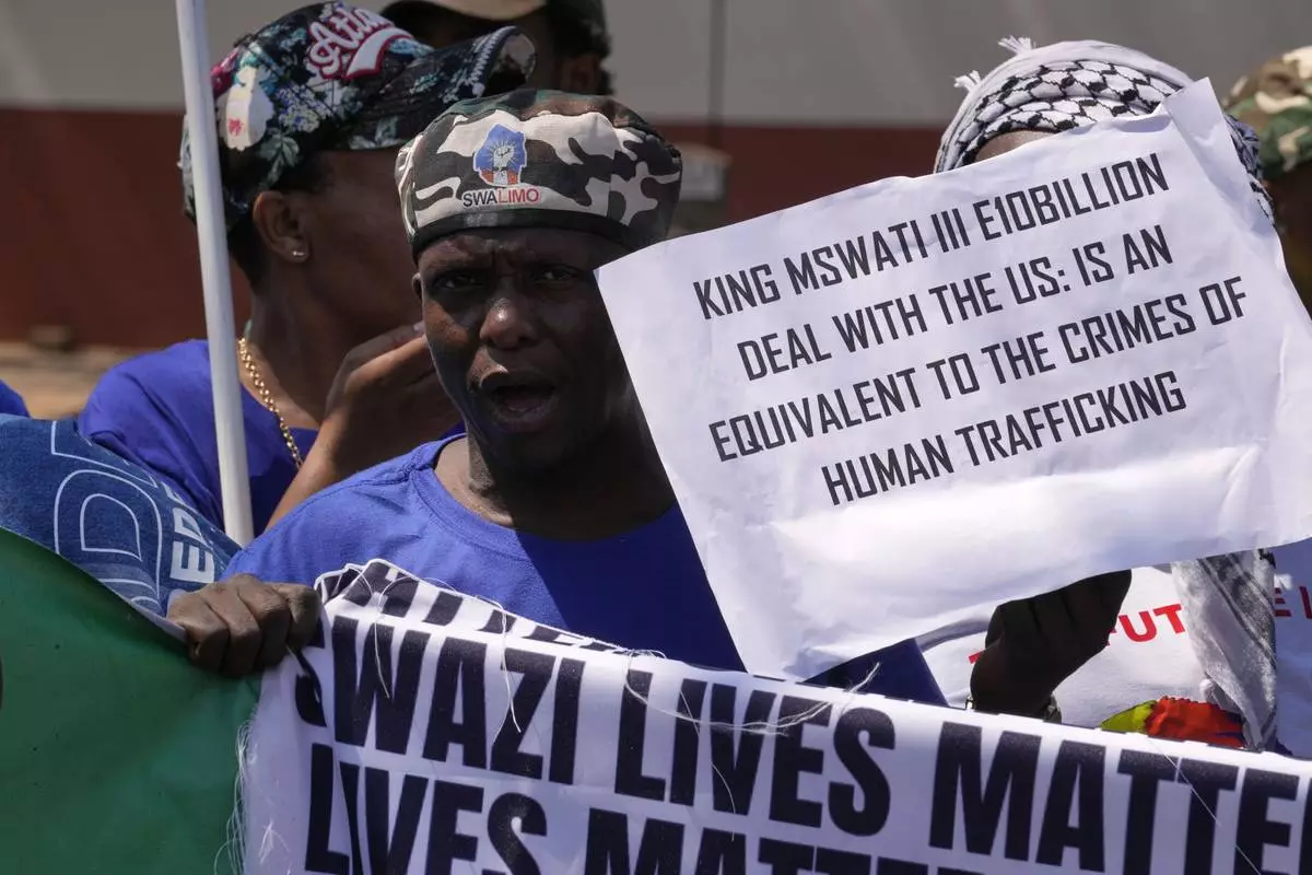 PRETORIA (AP) — A group of about 100 pro-democracy activists from Eswatini protested Friday at the U.S Embassy in South Africa's capital over their country's deal to receive five immigrants deported by the U.S.