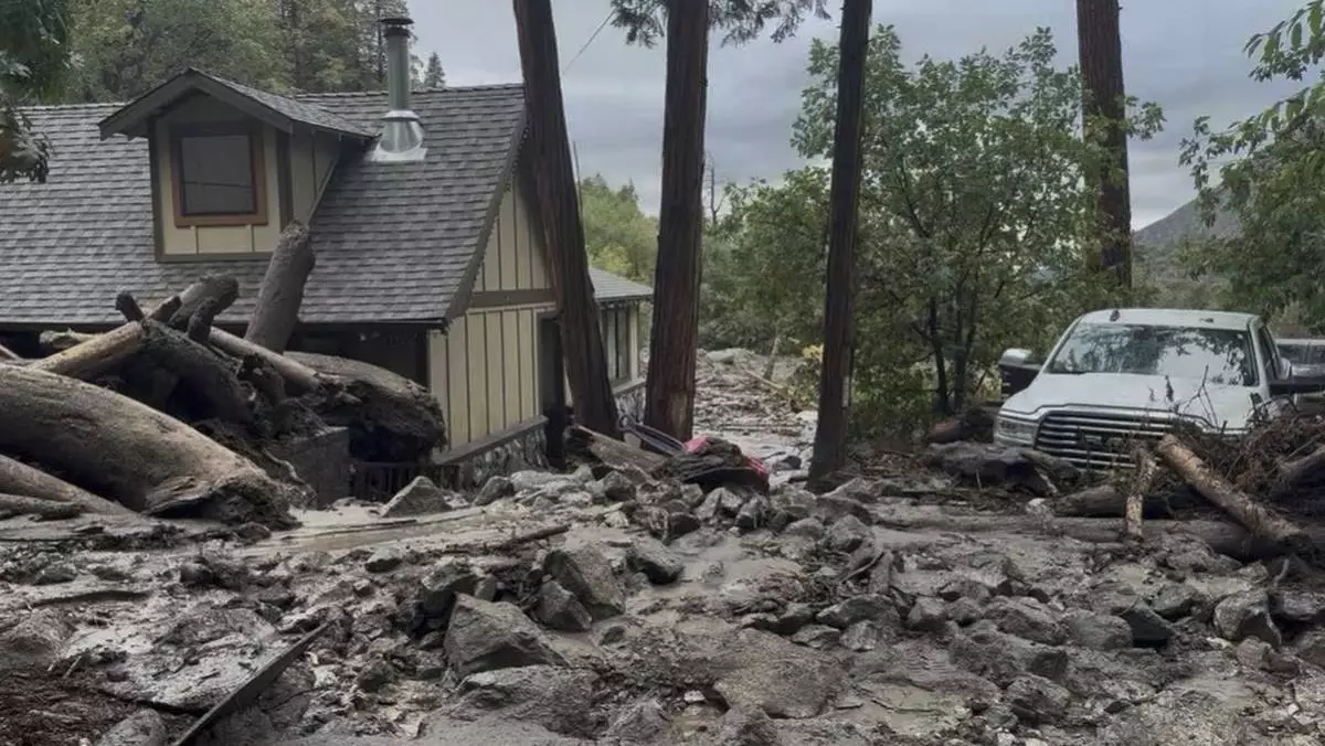 The mudslides affected the tiny mountain communities of Forest Falls, Oak Glen and Potato Canyon, the county’s fire protection district said in a statement. One home in Forest Falls had giant tree trunks flung in its yard and piled so high they reached the roof.