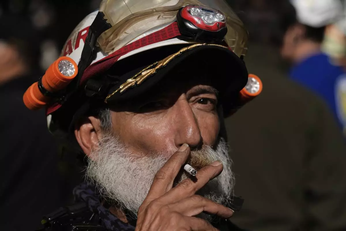 Carlos Cienfuegos, commander of the Topos volunteer rescue workers brigade, attends a ceremony marking the 1985 earthquake's 40th anniversary in Mexico City, Friday, Sept. 19, 2025. (AP Photo/Marco Ugarte)