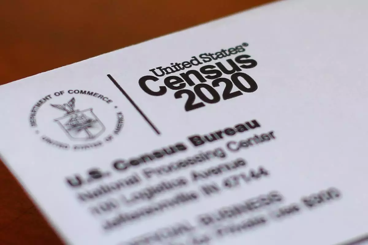 FILE - An envelope containing a 2020 census form mailed to a U.S. resident is seen in Detroit, on April 5, 2020. (AP Photo/Paul Sancya, File)