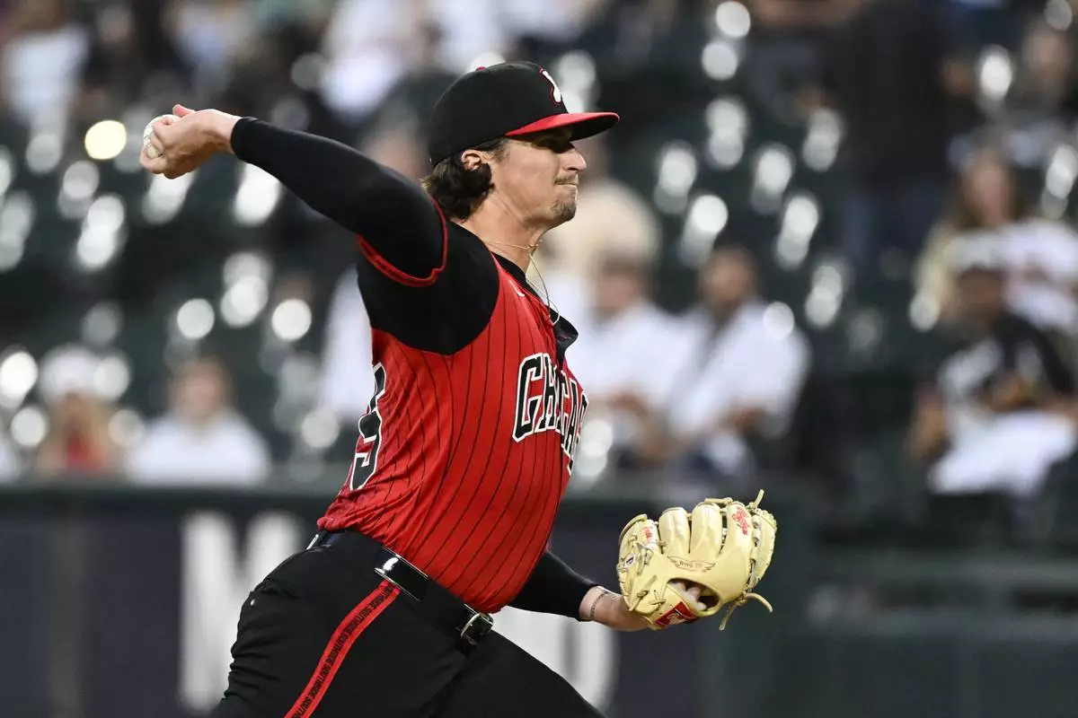 Chicago White Sox pitcher Davis Martin delivers during the first inning of a baseball game against the San Diego Padres, Friday, Sept. 19, 2025, in Chicago. (AP Photo/Matt Marton)