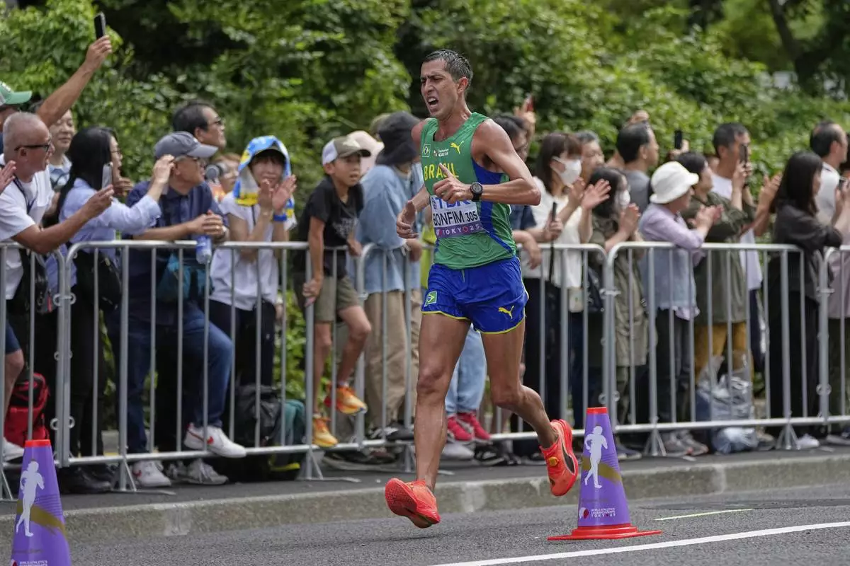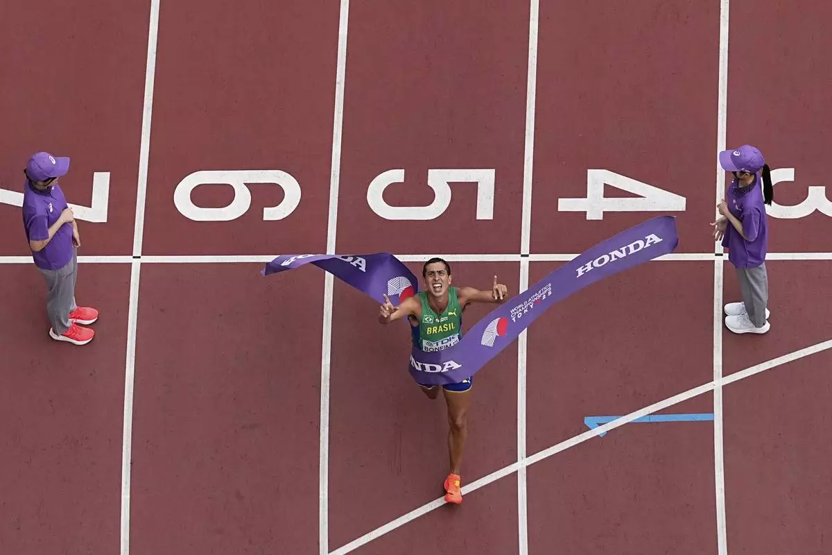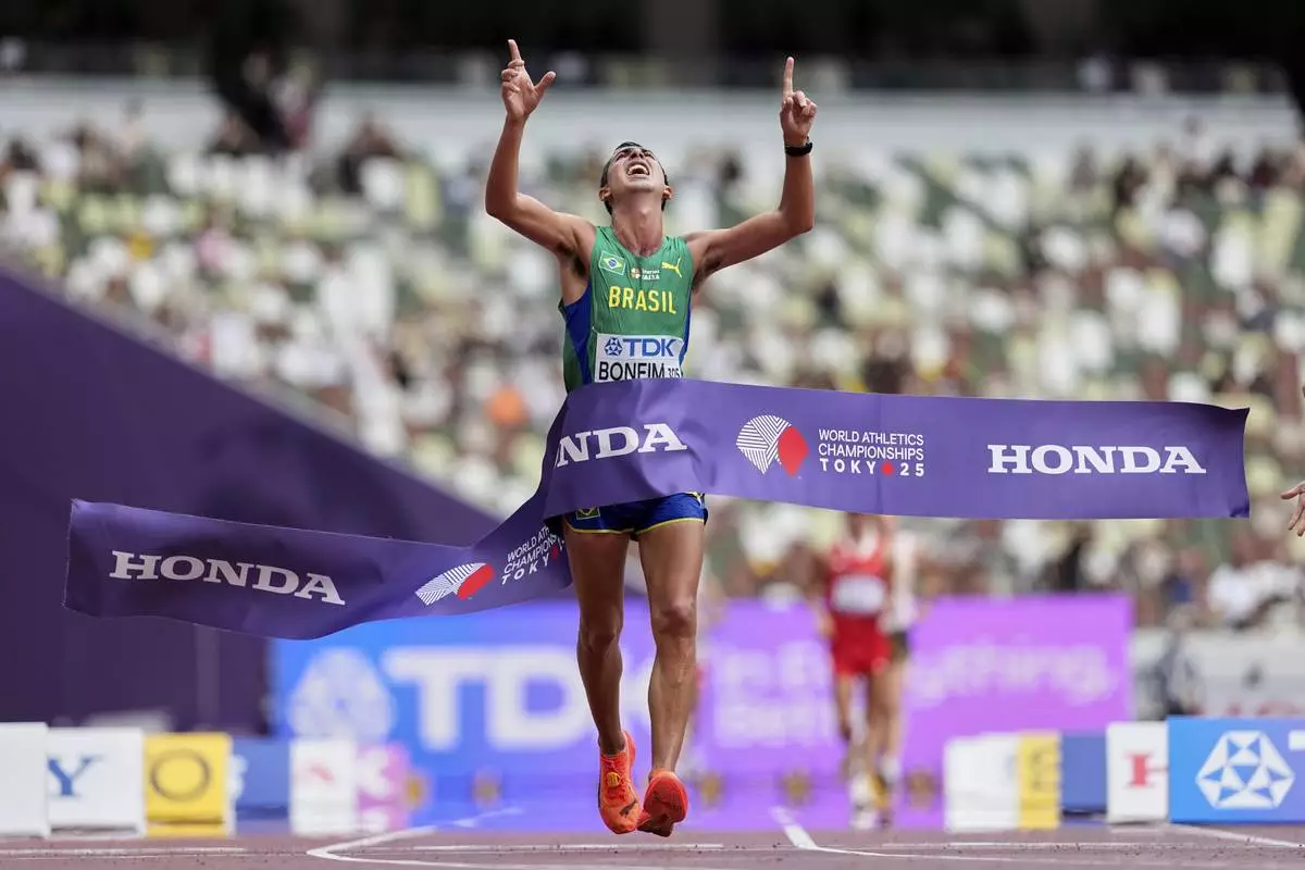Brazil's Caio Bonfim wins the men's 20 kilometers race walk at the World Athletics Championships in Tokyo, Saturday, Sept. 20, 2025. (AP Photo/Bernat Armangue)