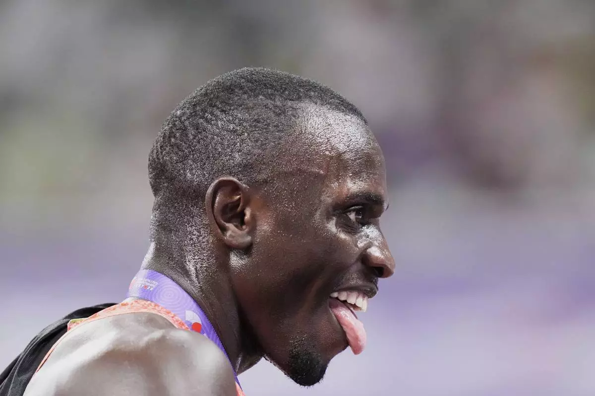 Kenya's Emmanuel Wanyonyi reacts after winning the men's 800 meters final at the World Athletics Championships in Tokyo, Saturday, Sept. 20, 2025. (AP Photo/Eugene Hoshiko)
