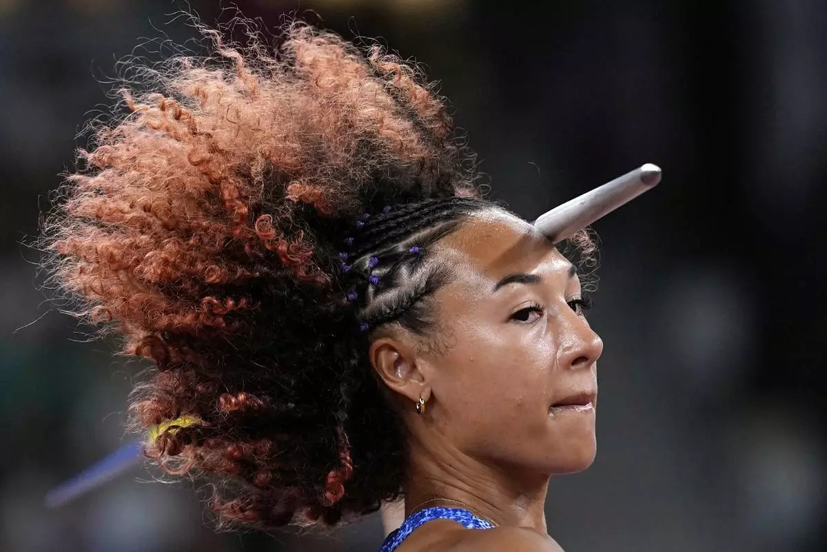 United States' Taliyah Brooks makes an attempt in the heptathlon javelin throw at the World Athletics Championships in Tokyo, Saturday, Sept. 20, 2025. (AP Photo/Matthias Schrader)