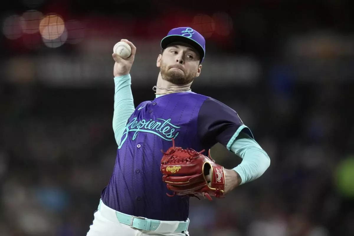 Arizona Diamondbacks starting pitcher Ryne Nelson throws against the Philadelphia Phillies during the first inning of a baseball game Friday, Sept. 19, 2025, in Phoenix. (AP Photo/Ross D. Franklin)