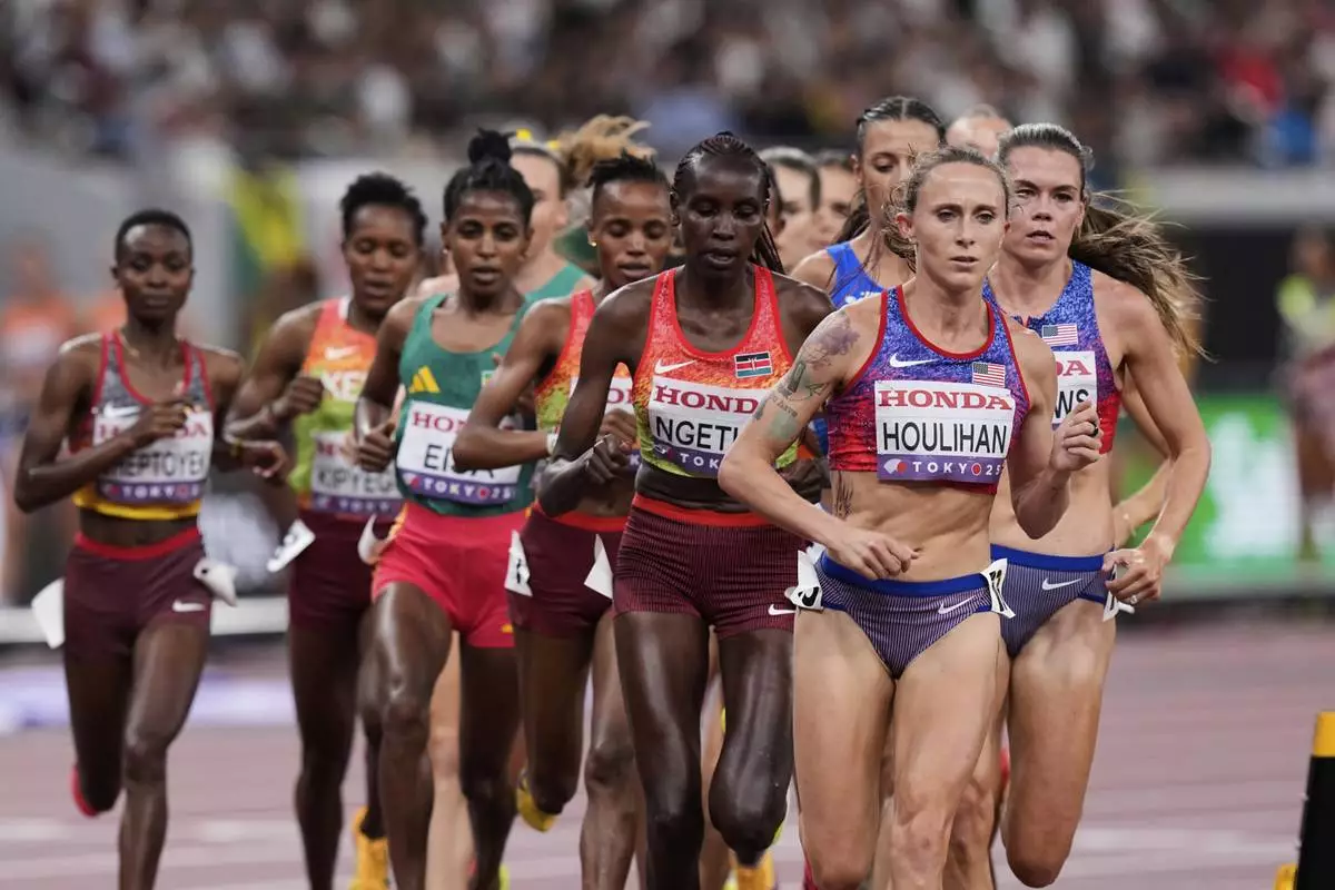 The 32-year-old Houlihan, who missed four years and two Olympics as the result of a much-debated ban for what she said was eating a drug-tainted burrito, finished one spot out of the medals Saturday in the 5,000 meters, one of the most-stacked races on the program.