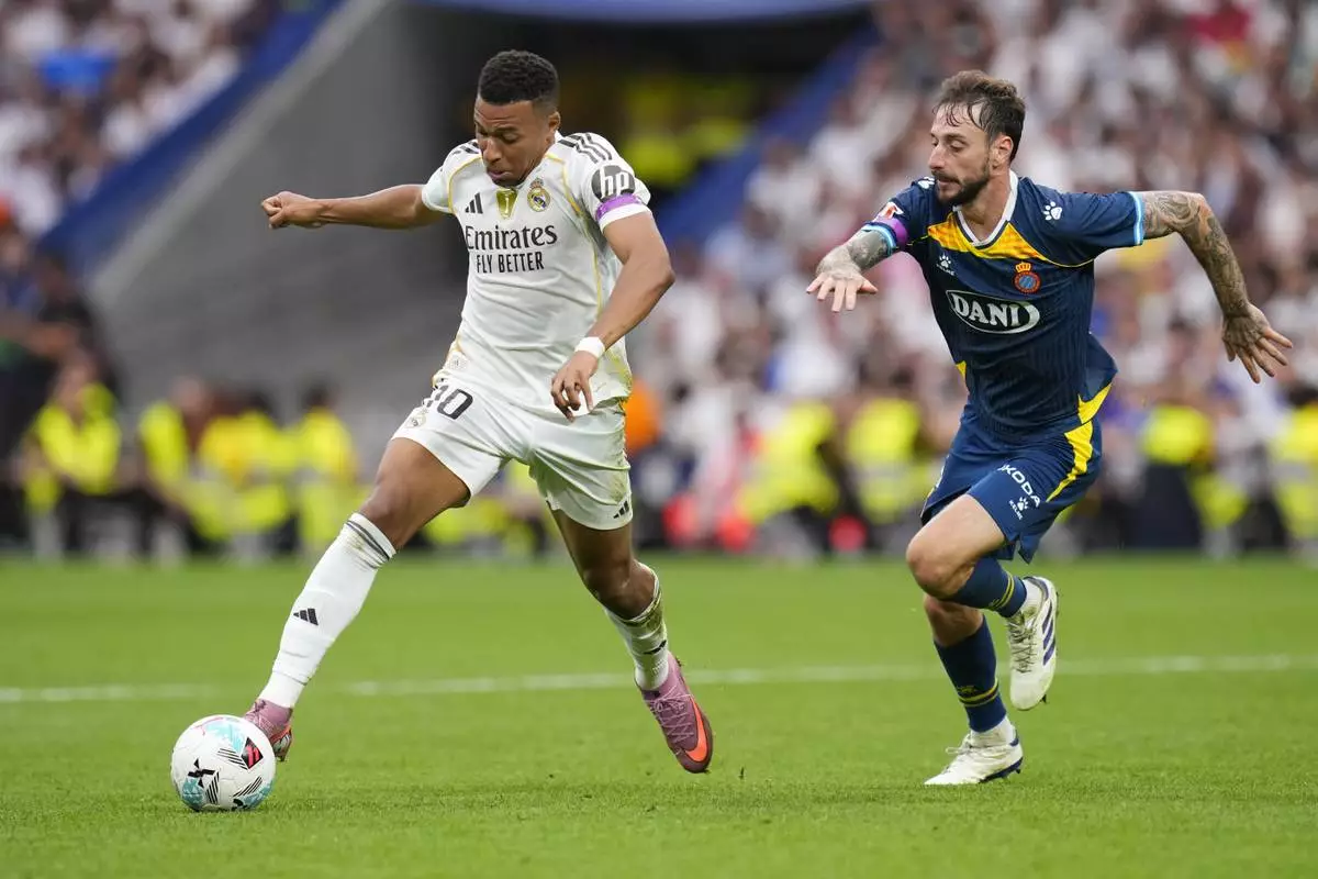 BARCELONA, Spain (AP) — Kylian Mbappé and Éder Militão scored from well outside the area to help Real Madrid ease past Espanyol 2-0 in La Liga on Saturday and deal the Barcelona-based side its first loss.