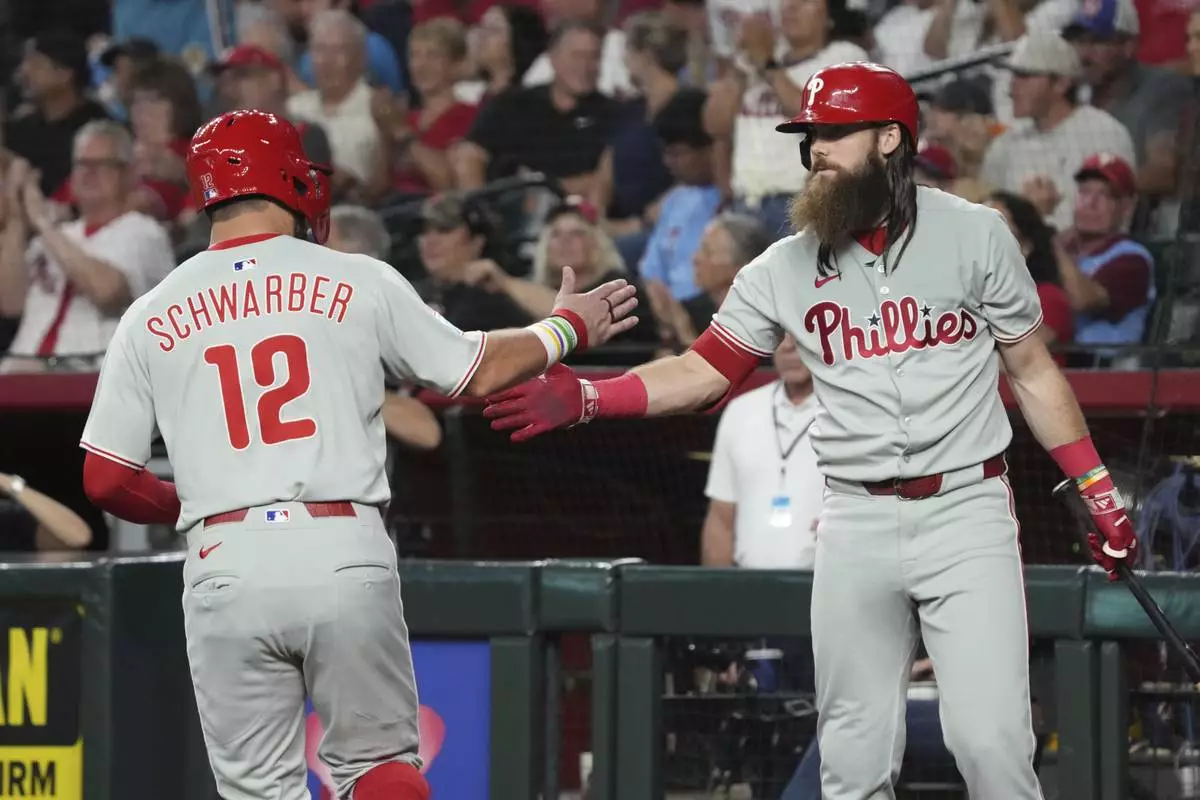 It took six pitches for the Phillies to take the lead. Harrison Bader had a four-pitch walk and Kyle Schwarber lined a double to left, scoring Bader easily. Schwarber later scored on J.T. Realmuto’s deep sacrifice fly to center. Corbin Carroll and Ketel Marte drove in runs to tie the game.