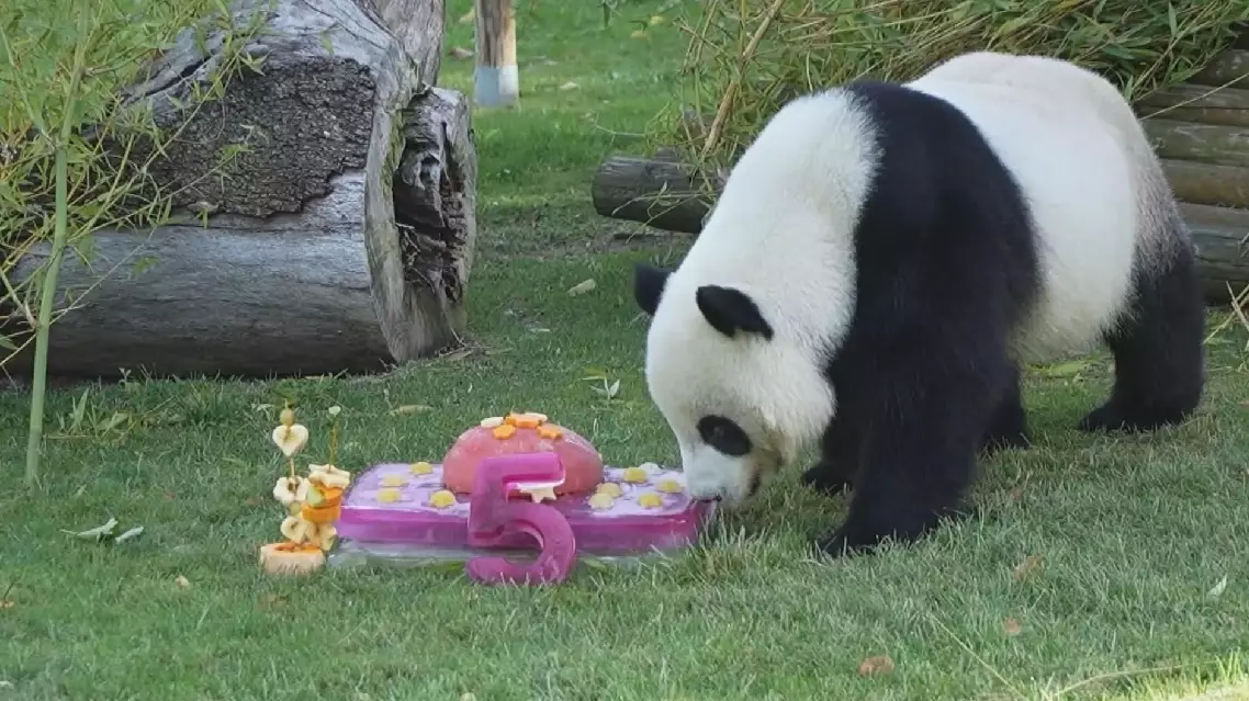 Spain's Madrid Zoo Aquarium held a series of celebration on Saturday for the fifth birthday of its two giant pandas, Jin Xi and Zhu Yu, drawing crowds of visitors eager to share in the occasion.