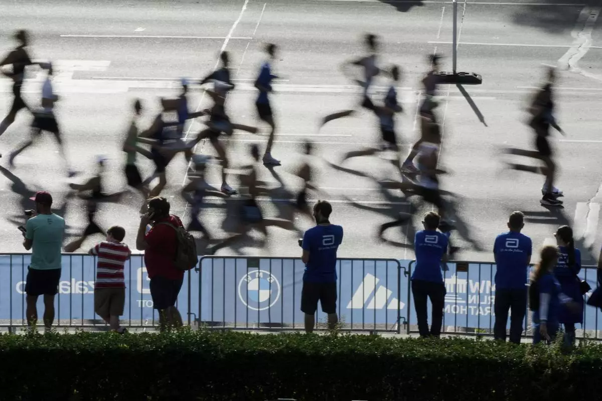 BERLIN (AP) — Sabastian Sawe of Kenya finished far ahead of his rivals to win the Berlin Marathon on Sunday, when unseasonable warmth thwarted his effort to break the course record.