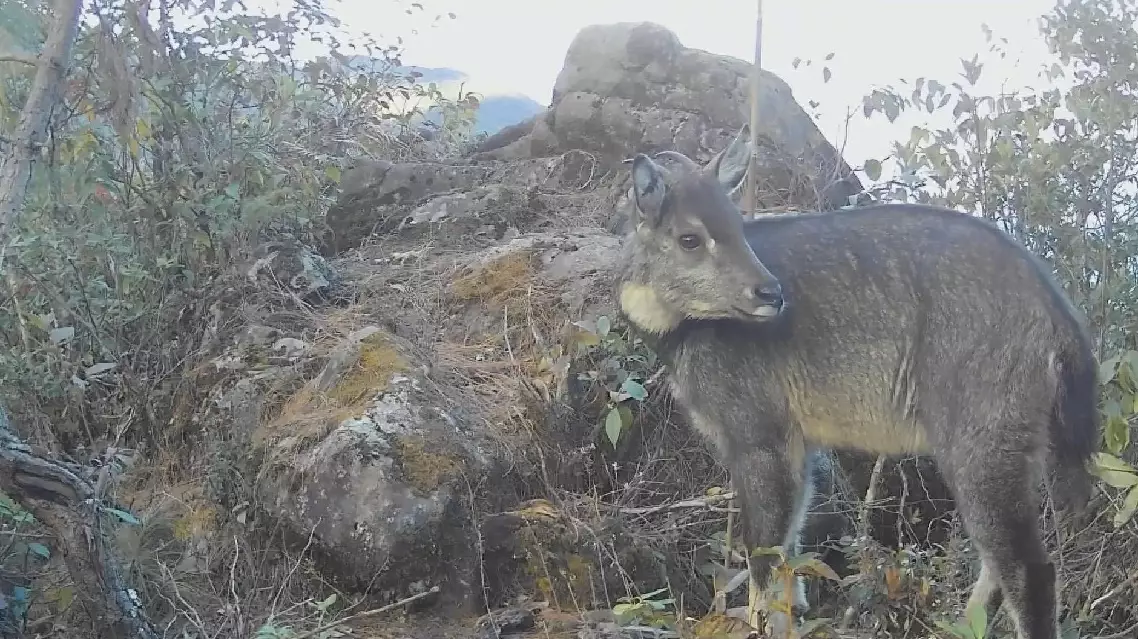 A rare Chinese goral and its young were captured climbing, grazing and sharing space with a silver pheasant in the dense forests of the Gaoligong Mountain Nature Reserve in southwest China's Yunnan Province.