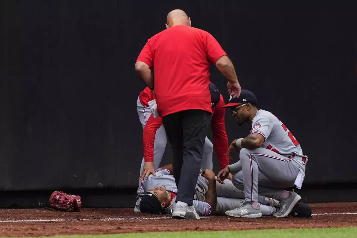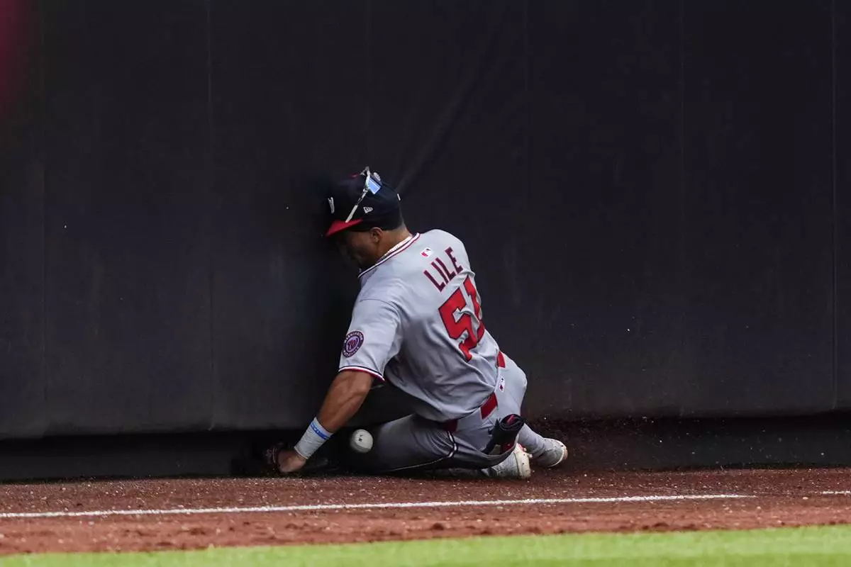 Lile initially appeared to be seriously hurt as he slid into the left-field wall in the third inning. The 22-year-old, who hit a two-run, inside-the-park homer in the 11th inning of the Nationals’ 5-3 win on Saturday, writhed in pain as Luis Torrens, who was on second, ran home for what was initially called a sacrifice fly. Mullins, who lingered at first base, eventually tried running to second, where he was tagged out.
