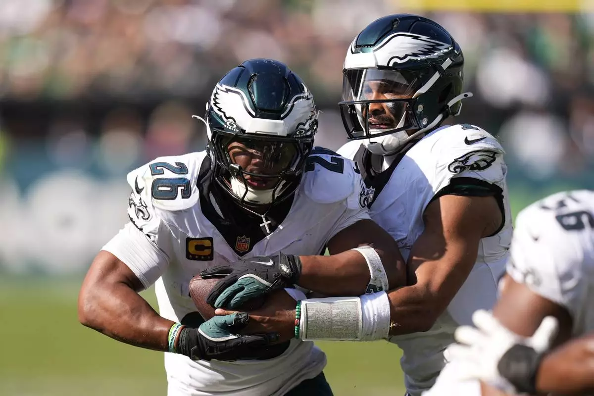 On the go-ahead drive, Hurts shook off his malaise and found receivers largely ignored over the first 2 1/2 games of the season. He hit A.J. Brown for 25 yards, DeVonta Smith for 10 and then the big one -- Brown shook off a defender for a 23-yard gain.