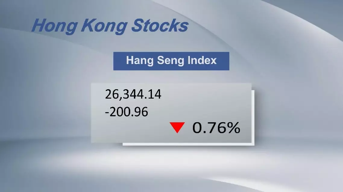 Hong Kong Hang Seng Index decreased 0.76 percent to close at 26,344.14 points on Monday.