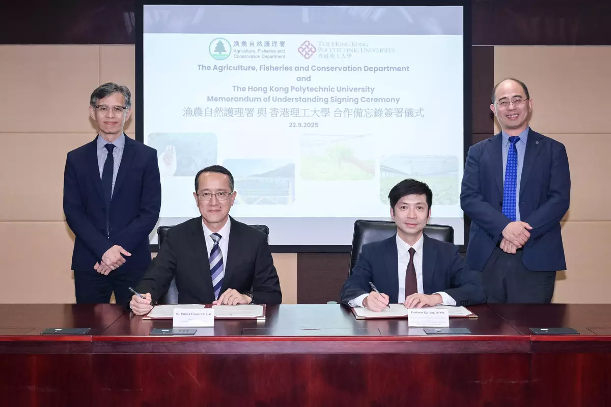 AFCD and PolyU sign MOU to advance sustainable development of Hong Kong's agriculture and fisheries through technological innovation Source: HKSAR Government Press Releases