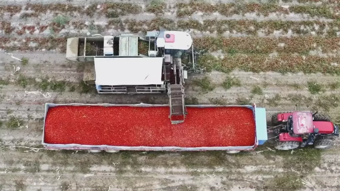 "In the past, people used hands to plant tomato seedlings one by one. And during the harvest, the villagers had to buy thousands of bags and manually put the tomatoes into the bags. Each day, they got up at four or five o'clock early in the morning and then worked until eight or nine o'clock in the evening. Now the farming processes have been largely mechanized, which makes the planting easy and brings high output of quality products. The harvesters are able to sort the tomatoes based on their colors, and automatically remove all the green and rotten fruits, ensuring that only the good ones are harvested. In this way, the farmers feel confident about securing good harvests," said Zhu Jianyun, a villager in Hutubi County of Changji Hui Autonomous Prefecture.