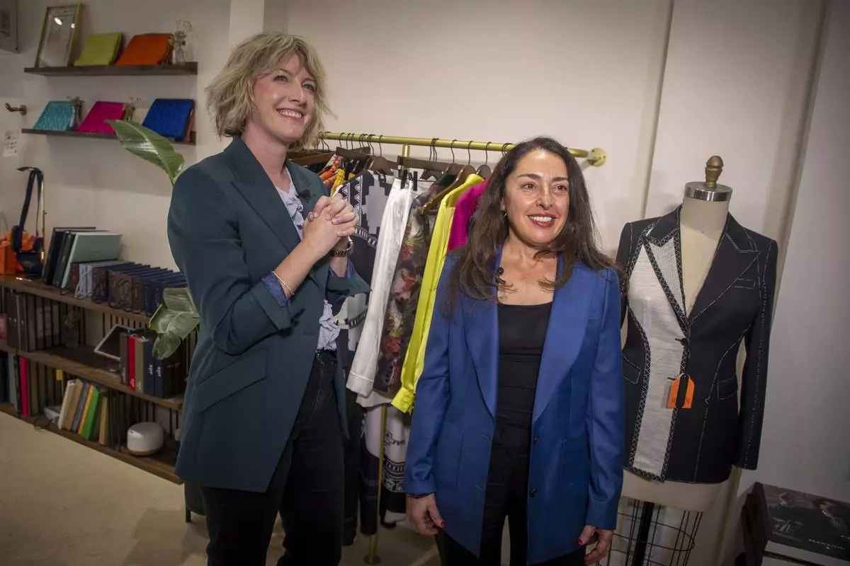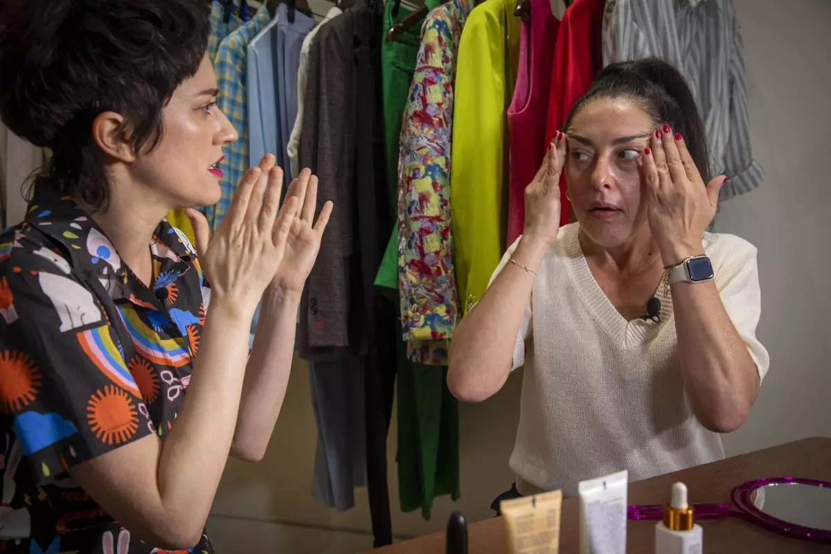 Stylist Natalie Tincher, left, and Deborah Borg discuss how to pull off the no makeup makeup look at the women's clothing store Dalya on Wednesday, Aug. 27, 2025, in New York. (Photo by Andy Kropa/Invision/AP)