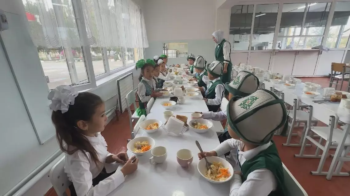 "I had delicious soup today. My friends and I love coming to our cafeteria and having lunch together," said Maksut Zhusupov, a first-grade student.