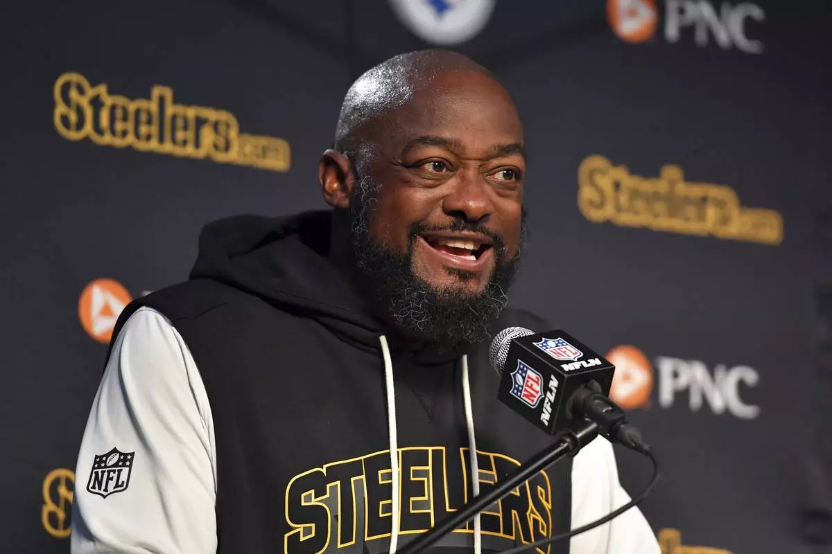 Pittsburgh Steelers head coach Mike Tomlin speaks at a news conference after an NFL football game against the New England Patriots, Sunday, Sept. 21, 2025, in Foxborough, Mass. (AP Photo/Steven Senne)
