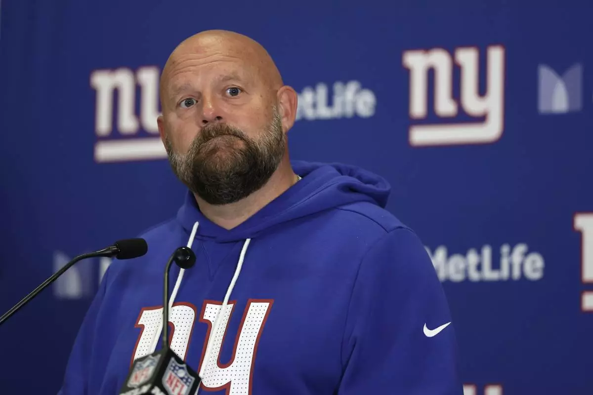 New York Giants head coach Brian Daboll speaks during a news conference following an NFL football game against the Kansas City Chiefs Sunday, Sept. 21, 2025, in East Rutherford, N.J. (AP Photo/Adam Hunger)