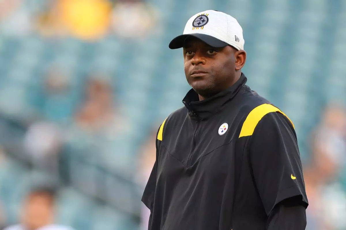 FILE - Pittsburgh Steelers wide receivers coach Ike Hilliard looks on before a preseason NFL football game against the Philadelphia Eagles, Aug. 12, 2021, in Philadelphia. (AP Photo/Rich Schultz, File)