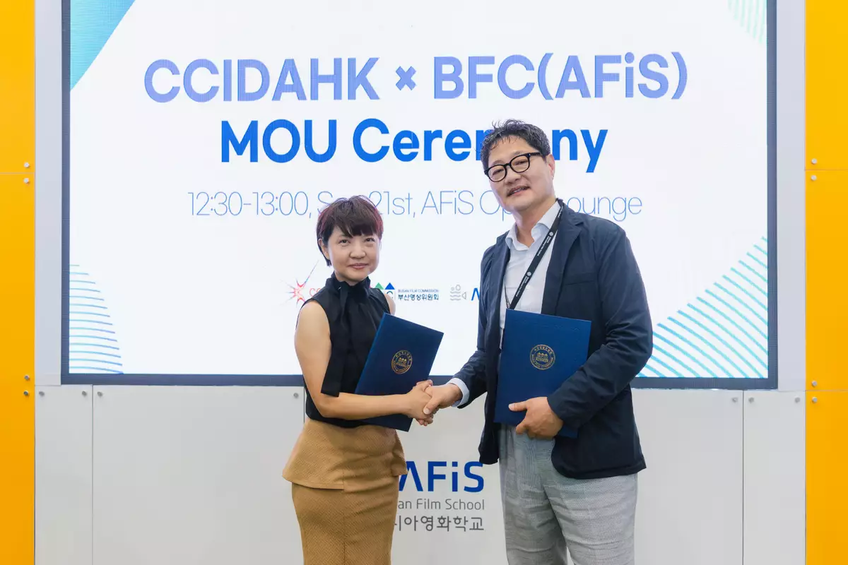 CCIDA also took the opportunity to sign an MOU with the Busan Asian Film School which aimed at strengthening co-operation in activities and exchanges related to the cultivation of film talents. At the Asian Contents & Film Market, CCIDA collaborated with the Hong Kong Trade Development Council to support the establishment of the Hong Kong Pavilion, increasing overseas exposure for Hong Kong films and promoting more business collaborations. CCIDA also recommended and sponsored four Hong Kong producers – Johnny Wang, Terence Choi, Fanny Chong and Kinnie Cheung – to participate in the "Producer Hub", where they engaged in in-depth discussions and business liaison with international industry professionals to explore co-production and project development opportunities.