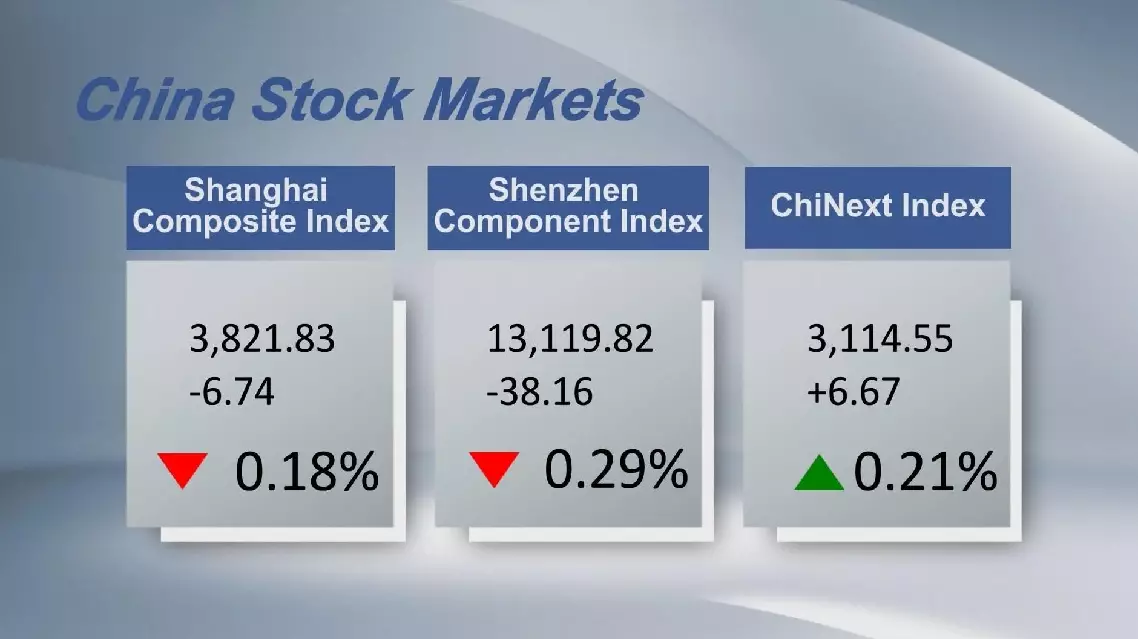 Chinese stocks closed lower on Tuesday, with the benchmark Shanghai Composite Index down 0.18 percent to 3,821.83 points.