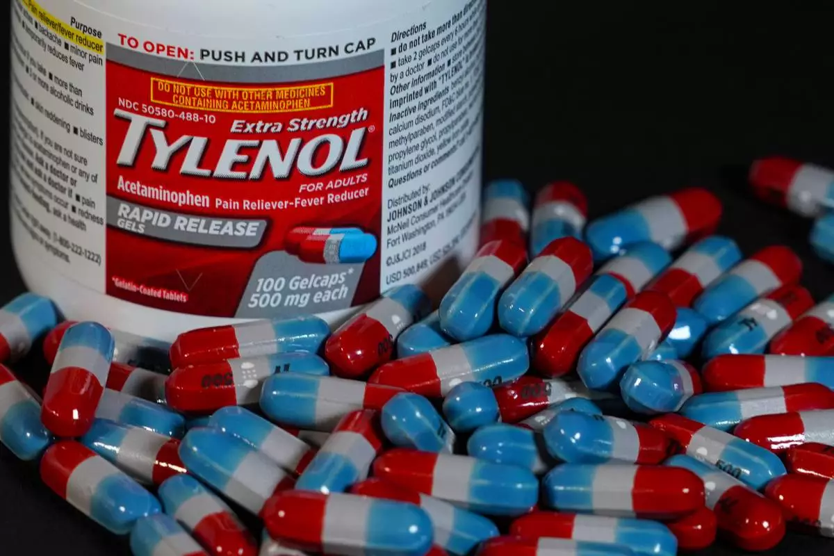 Extra Strength Tylenol is shown in Carmel, Ind., Tuesday, Sept. 23, 2025. (AP Photo/Michael Conroy)