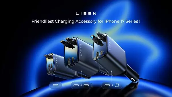 NEW YORK, Sept. 23, 2025 /PRNewswire/ -- With the debut of Apple's new iPhone 17 series, LISEN announced the launch of its Retractable Cable Car Charger Series, fully optimized for the entire iPhone 17 lineup. Designed to seamlessly blend into modern car interiors, the chargers feature a retractable cable that balances neat storage with convenient use. Supporting up to four devices charging simultaneously—including smartphones, tablets, and headphones—the series delivers reliable, fast power for road trips, family travel, and emergency charging needs.