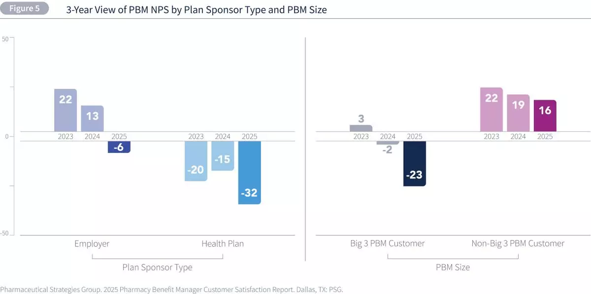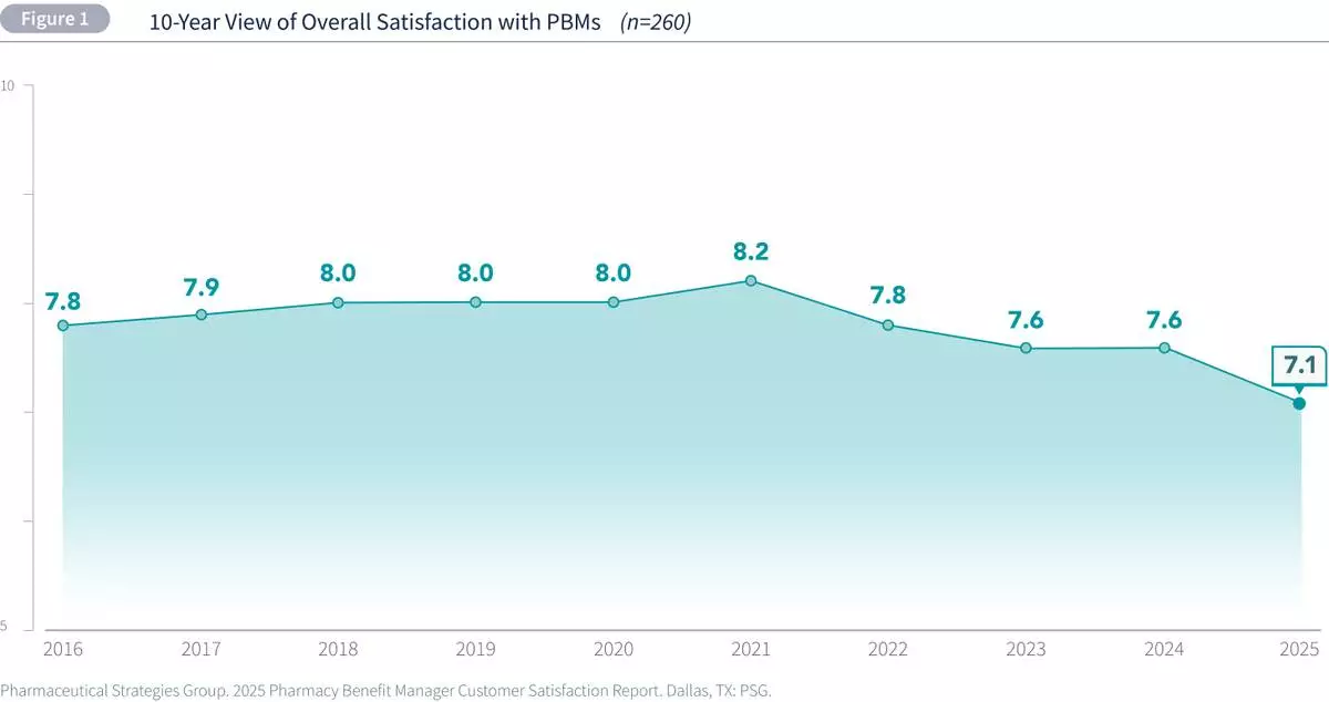 For over two decades, Pharmaceutical Strategies Group (“ PSG ”) has provided independent, research-driven insights into pharmacy benefit manager (PBM) performance through its annual report on customer satisfaction. The newly released 2025 Pharmacy Benefit Manager Customer Satisfaction Report reveals a pivotal shift in the market: Satisfaction with PBMs has reached historic lows, while plan sponsors’ desire for change in the industry and willingness to act are reaching new heights.