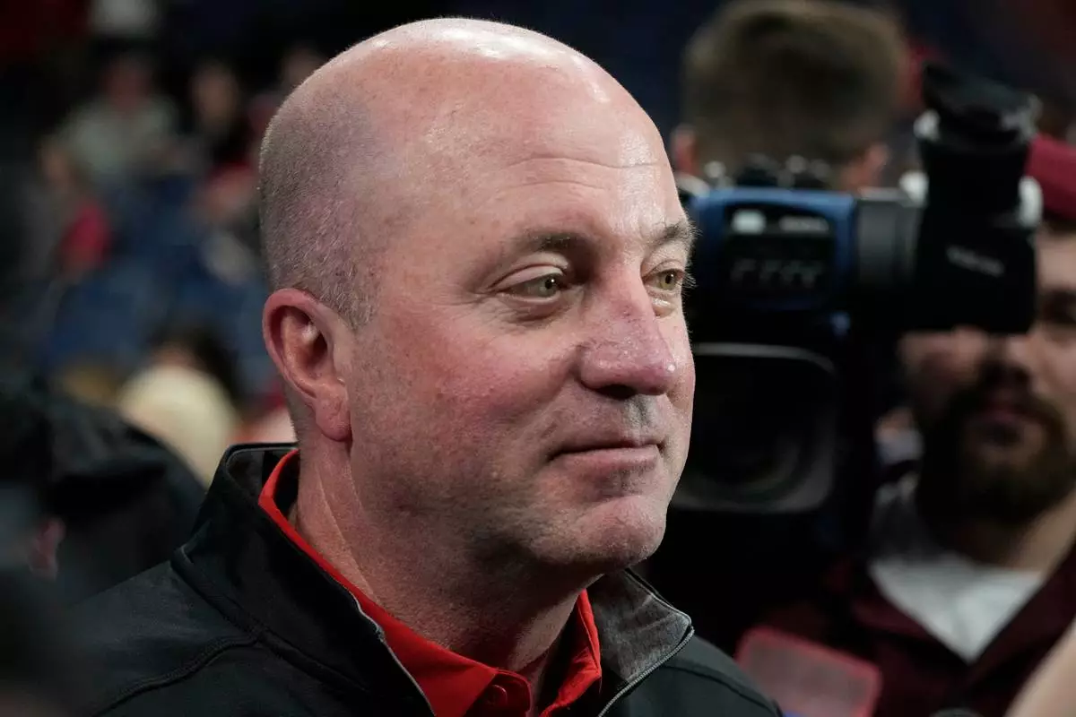 FILE - Nebraska athletic director Troy Dannen speaks to reporters during the team's practice for a first-round college basketball game in the NCAA Tournament, March 21, 2024, in Memphis, Tenn. (AP Photo/George Walker IV, File)