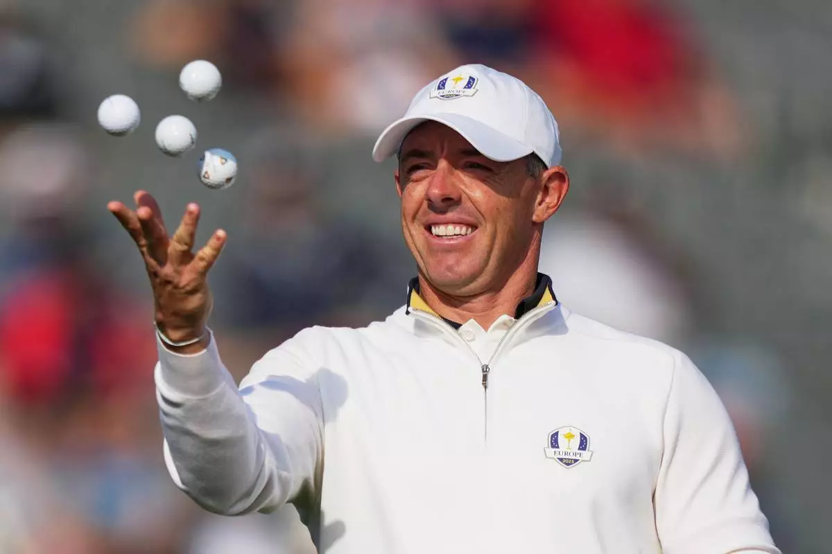 Europe's Rory McIlroy, of Northern Ireland, tosses balls in the air during a practice round for the Ryder Cup golf tournament, Tuesday, Sept. 23, 2025, in Farmingdale, N.Y., at Bethpage State Park's Black Course. (AP Photo/Matt Slocum)