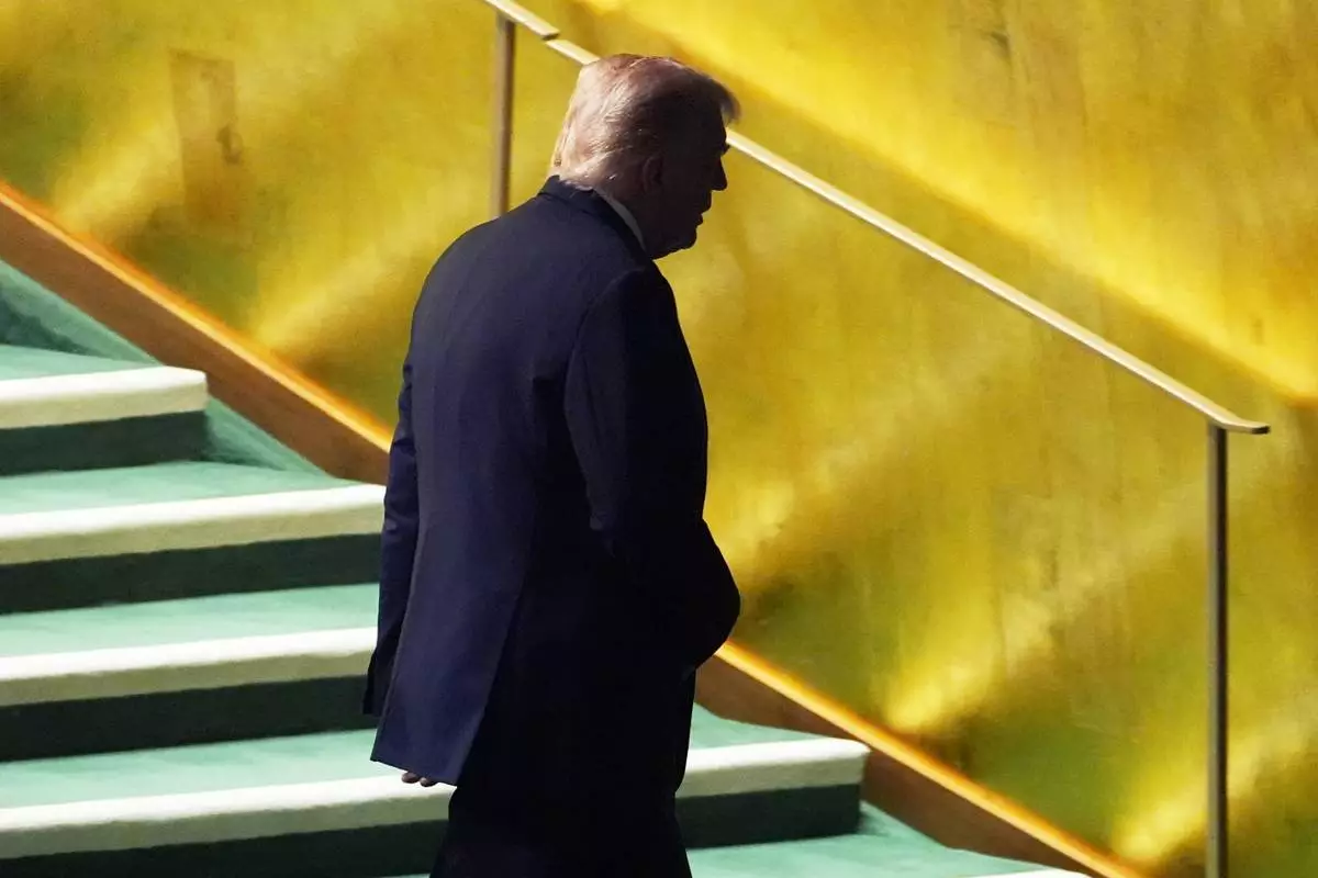 President Donald Trump walks off after speaking to the United Nations General Assembly, Tuesday, Sept. 23, 2025, in New York. (AP Photo/Evan Vucci)