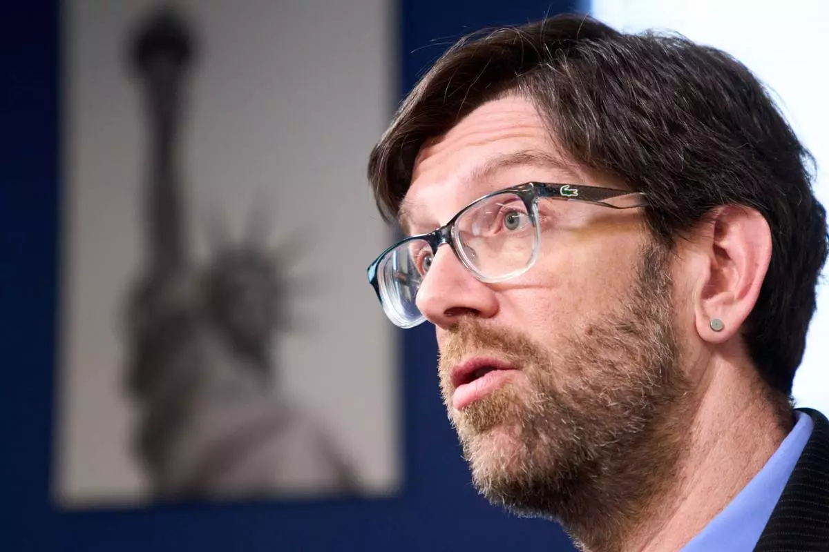 Simon Sandoval-Moshenberg, a lawyer on Kilmar Abrego Garcia's legal team who specializes in federal immigration cases, is interviewed in Fairfax, Va., Monday, Dec. 15, 2025. (AP Photo/Jacquelyn Martin)