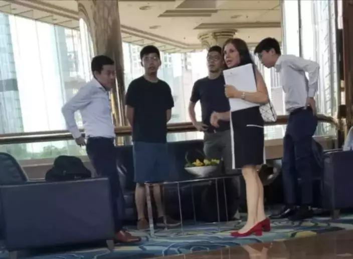 US Consul General Julie Eadeh caught with Joshua Wong and Nathan Law—snapshot from the frontline of Hong Kong’s political storm.