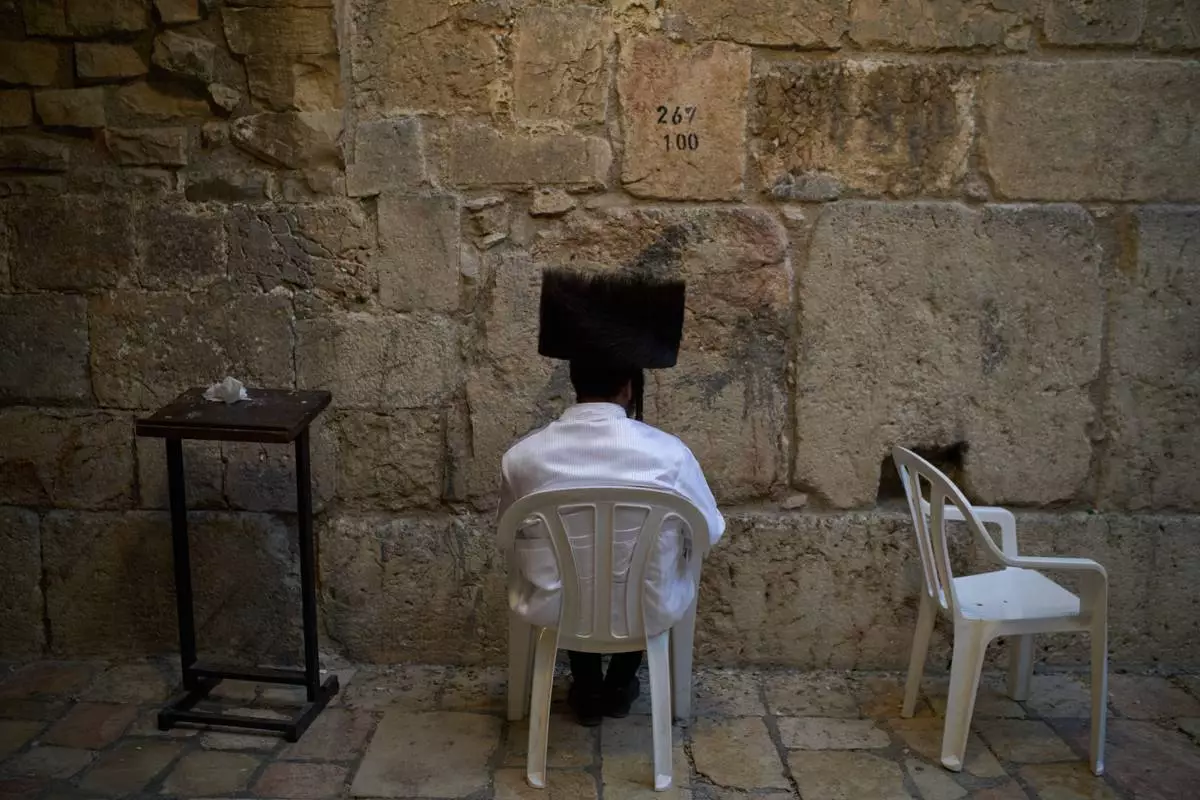 An Ultra-Orthodox Jewish man prays at the Little Western Wall during Rosh Hashanah celebrations, the Jewish New Year, in the Old City of Jerusalem, Tuesday, Sept. 23, 2025. (AP Photo/Leo Correa)